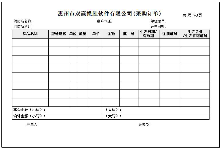 双赢医疗器械进销存gsp质量管理系统 采购订单【预览样式】