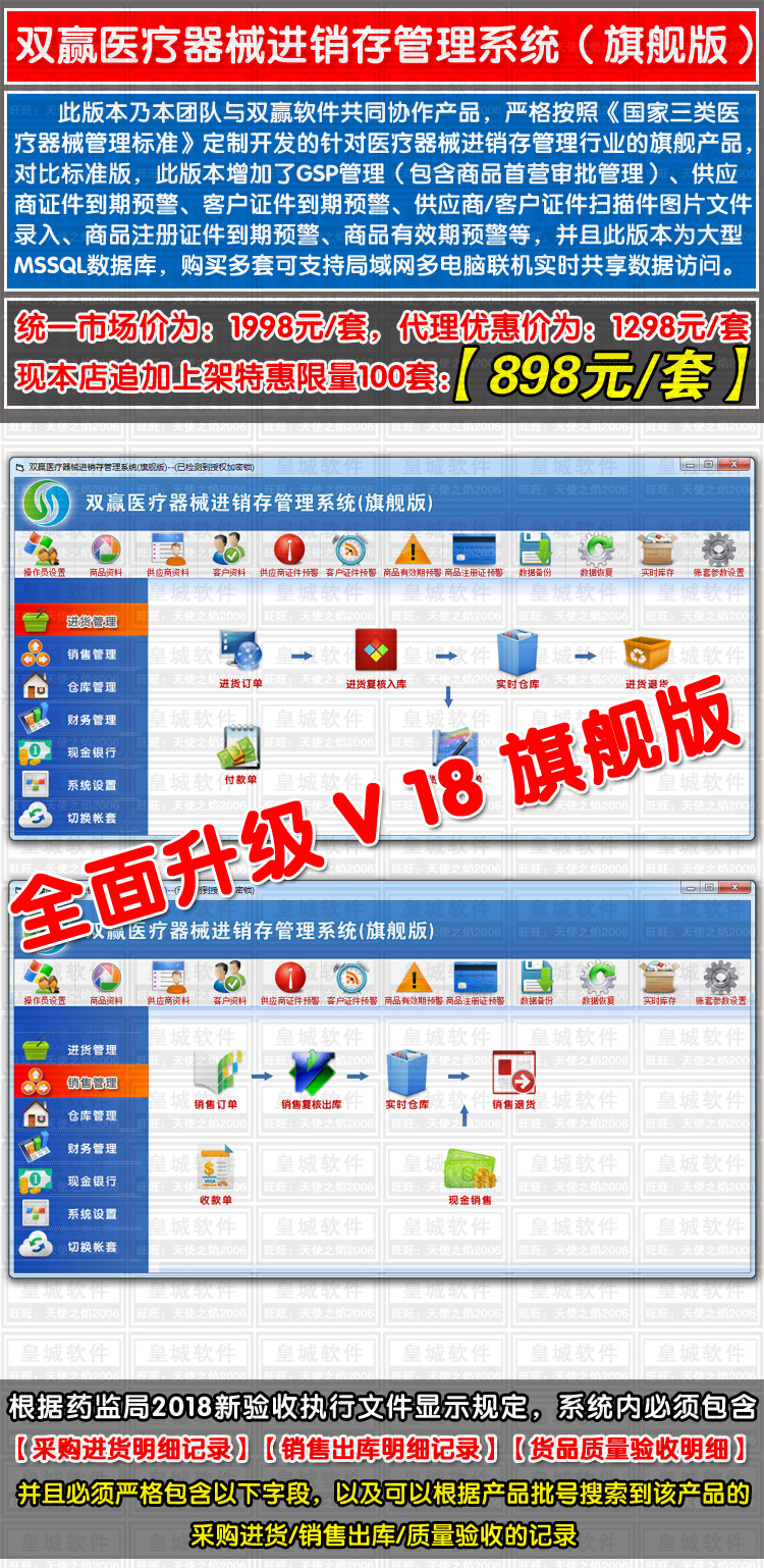 双赢医疗器械进销存管理软件 USB加密锁 隐形眼镜店二三类GSP系统